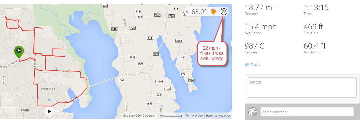 I was able to get in 36 miles this weekend. I was traveling all week so that is my total miles. I am 8 miles away from my monthly goal and should be able to get there. I knew it was windy but it was not warm till after noon at 64 degrees. Windy is an understatement, Yikes.