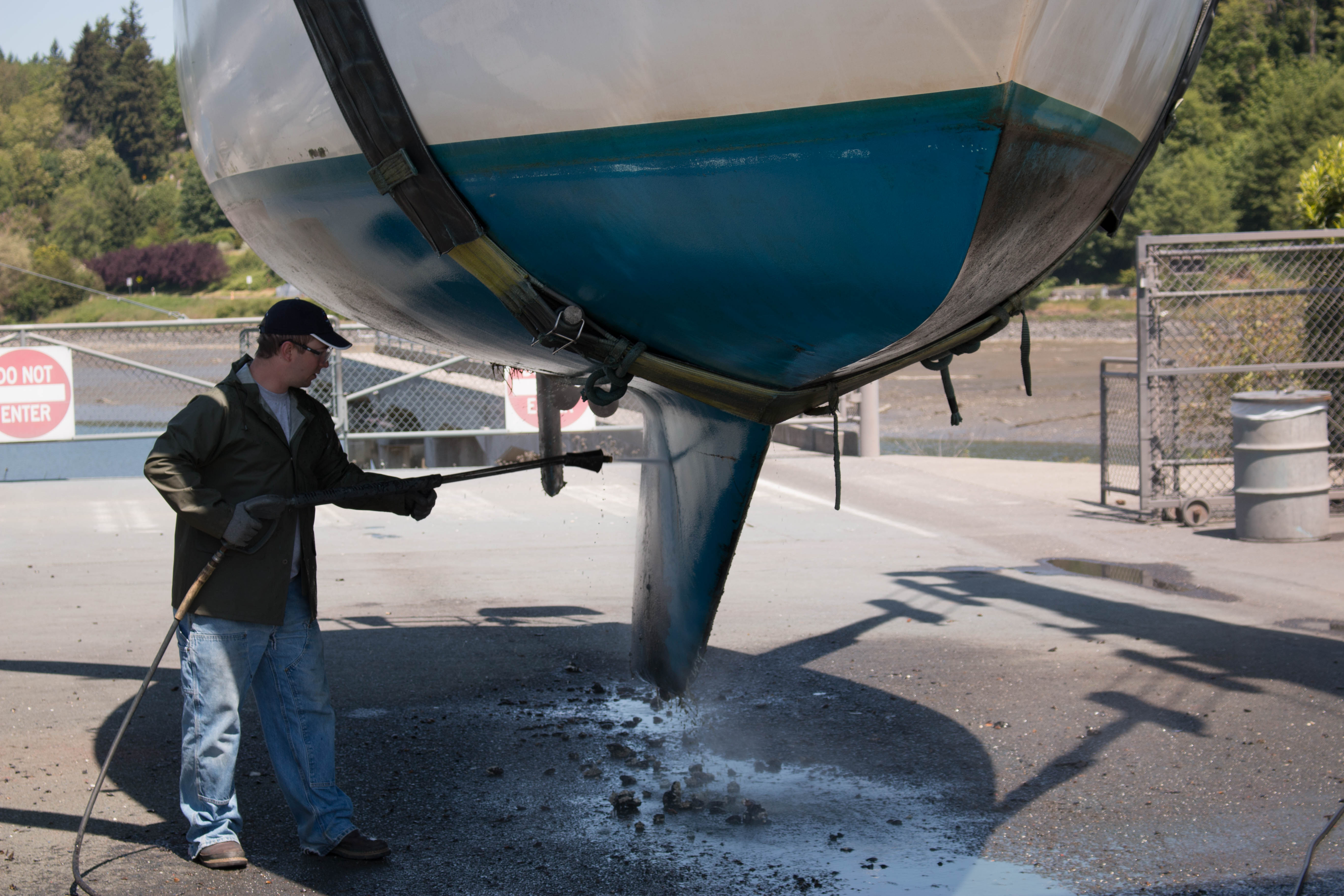 Here they are staging the boat lift and making sure the straps are correct so they don’t damage the prop and shaft or drop the dang thing.